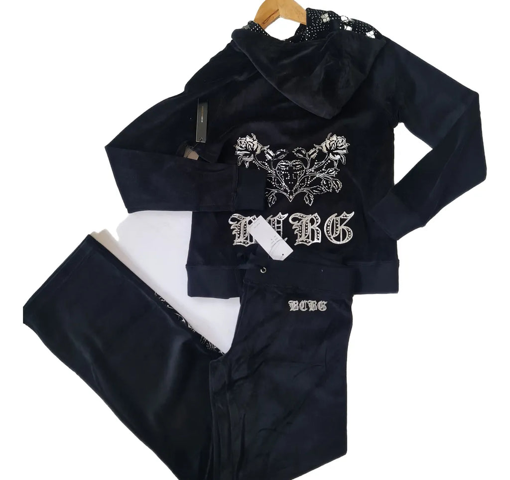 Bcbg pants velour black and silver M